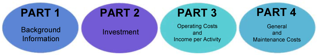 Part 2: Investment. Organizations are asked to list the various elements that will have to be obtained (purchased or supplied by the group) for the investment to be realized. For each item, it is also necessary to estimate the average working life of the item and who is to provide it. A simple calculation is then made to determine the average annual cost of each item.
